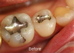 Composite fillings are tooth coloured fillings which require less drilling of tooth & restore natural appearance of the teeth, unlike amalgam fillings, which require more drilling of tooth and are unaesthetic.